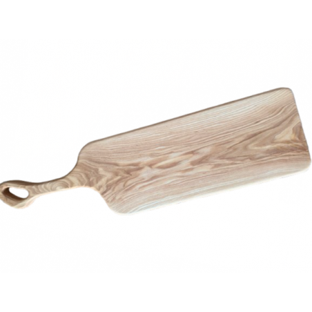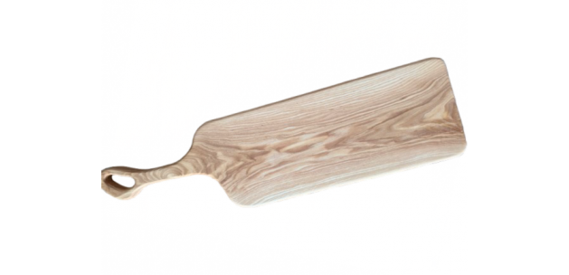 Wydłużony, nowoczesny kształt oraz ergonomiczny uchwyt z otworem ułatwiają przenoszenie i serwowanie potraw. Deska świetnie sprawdzi się do podawania serów, wędlin, przekąsek, pieczywa czy deserów, a także jako element dekoracyjny w kuchni lub jadalni.