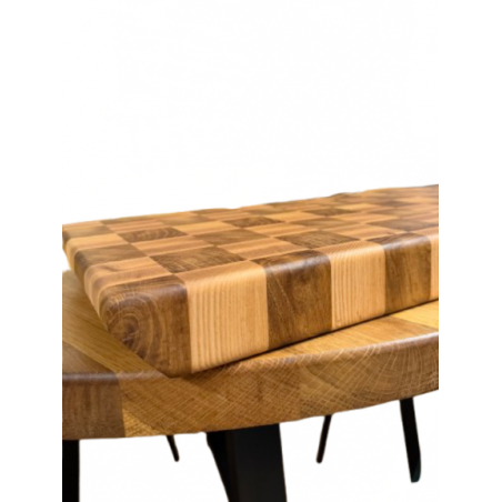 Profesjonalna deska do krojenia wykonana w technologii sztorcowej (end grain), która zapewnia wyjątkową trwałość oraz odporność na uszkodzenia. Charakterystyczny wzór szachownicy z naturalnego drewna nadaje jej elegancki i nowoczesny wygląd, dzięki czemu świetnie prezentuje się nie tylko podczas pracy w kuchni, ale także na blacie czy stole.